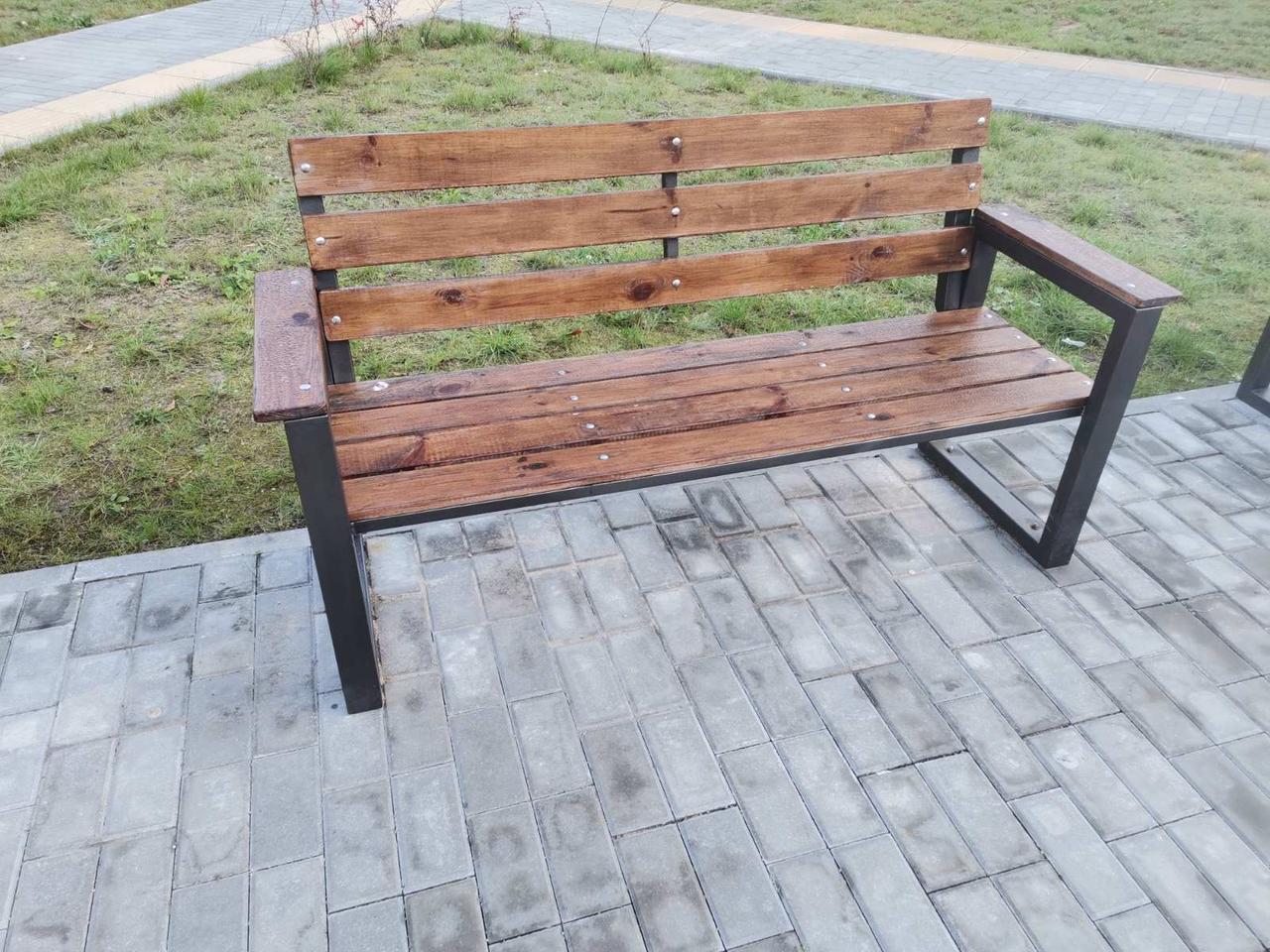 Сиденье и спинка выполняются из деревянных ламелей из лиственных пород, обработанных защитными составами для предотвращения гниения и растрескивания. Подлокотники добавляют комфорта, а лаконичный дизайн делает скамейку универсальной для любых типов ландшафтного оформления.